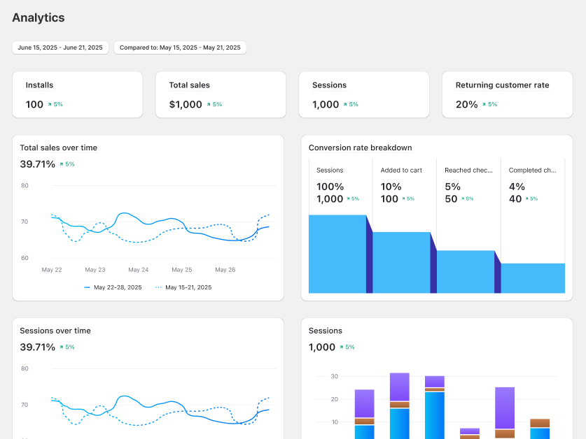 This metric shows how much your app is contributing to your overall sales. It helps you assess the impact of app-exclusive deals, campaigns, or design changes.