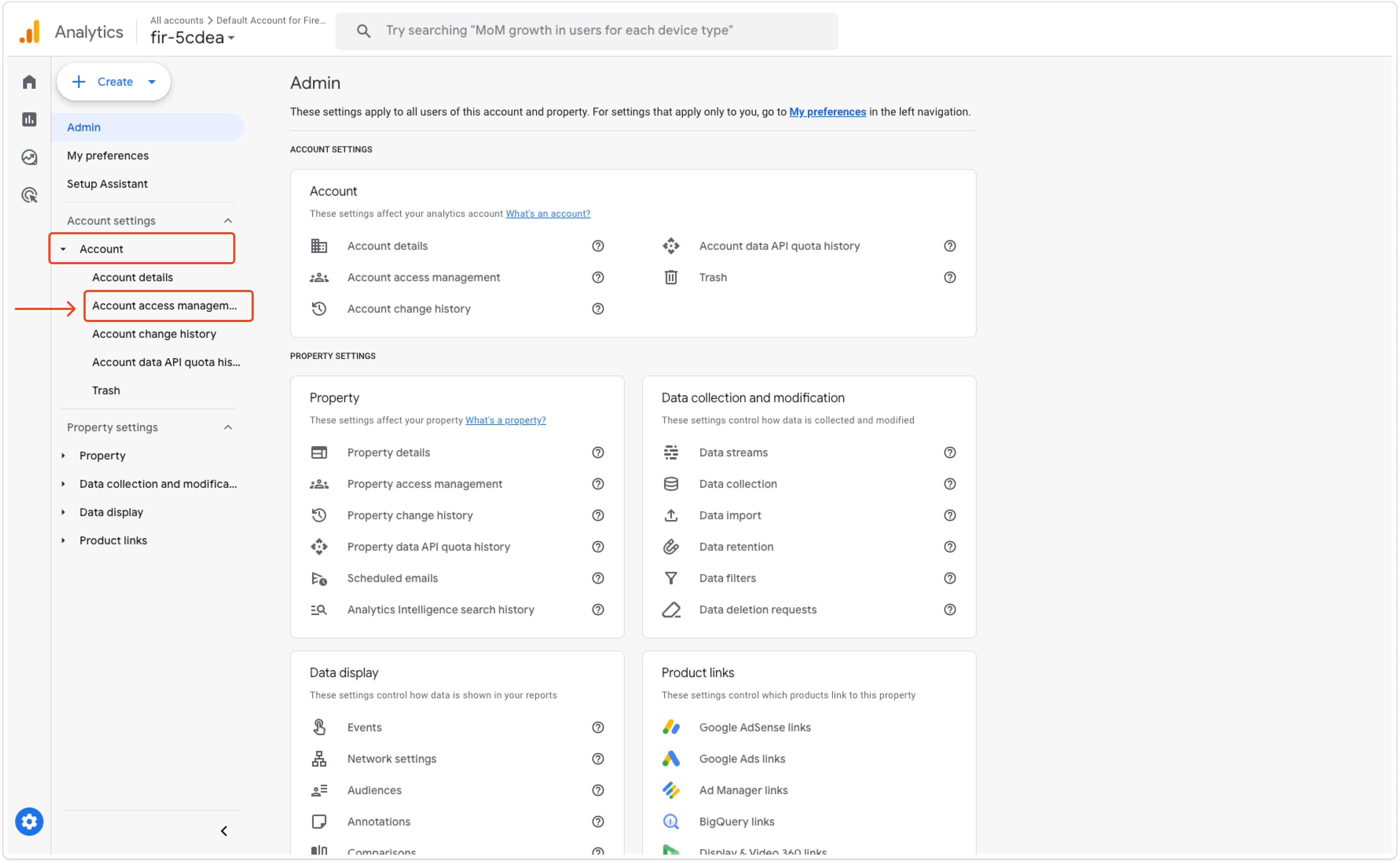 * As you are directed to Google Analytics, navigate to **Account > Account access management**