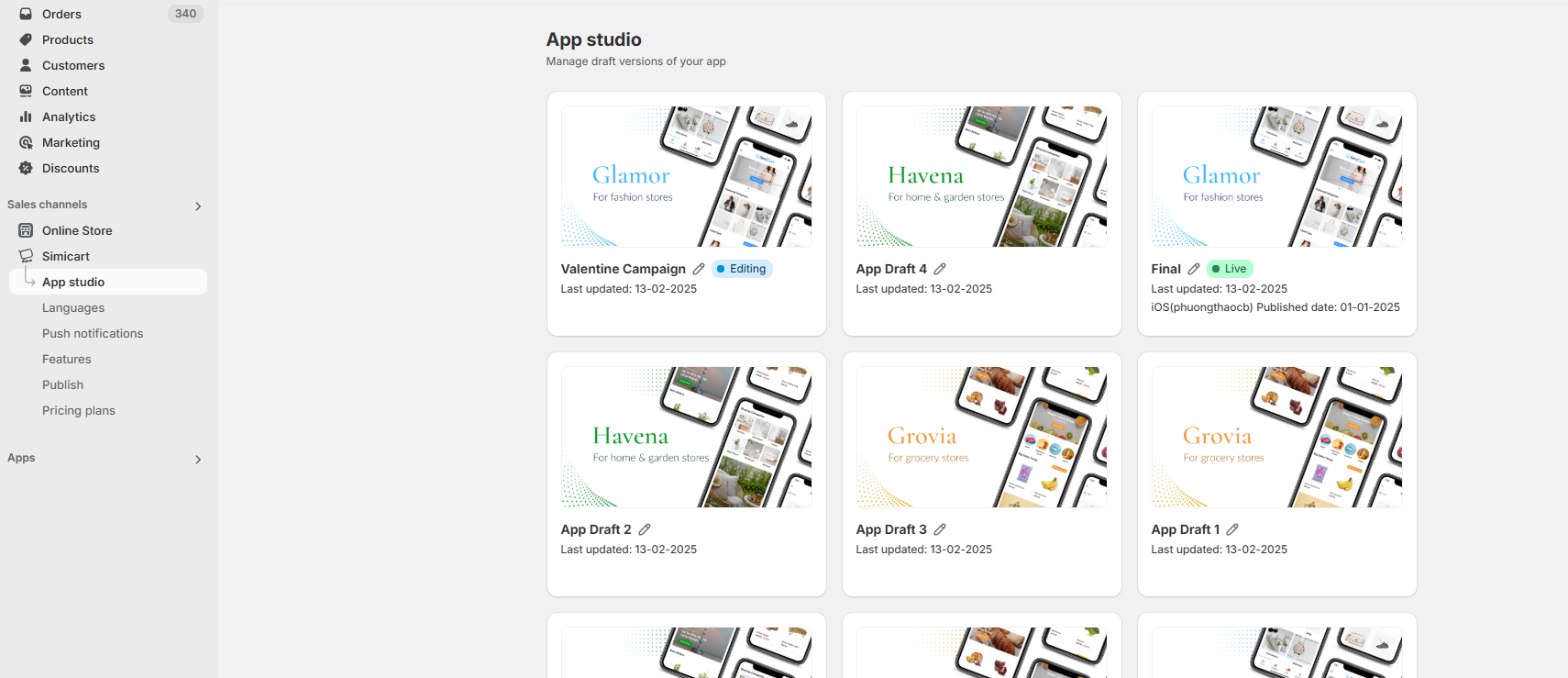 No more limitation to only one app draft at a time! With SimiCart, now you can create multiple app drafts to: