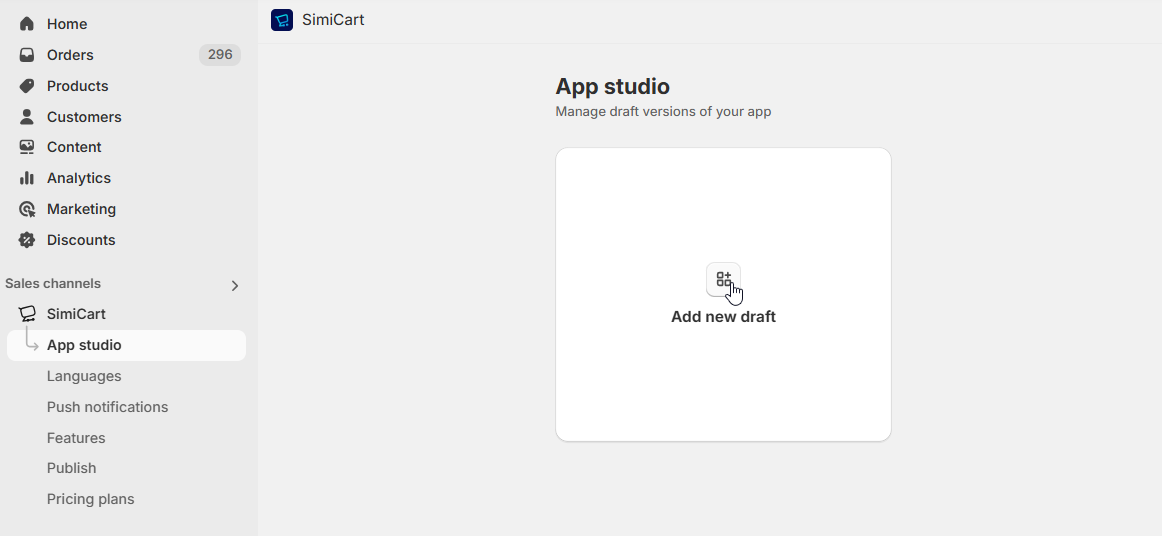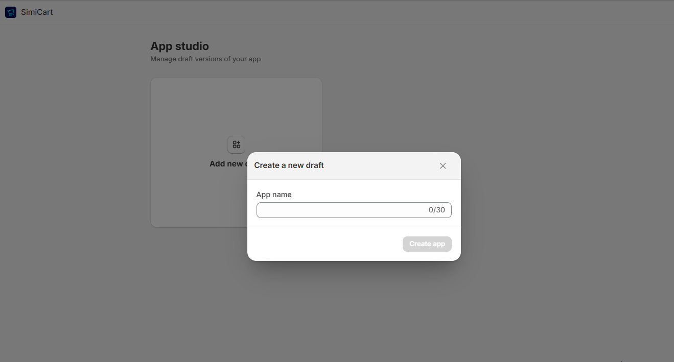 **Option 2:** Via our **App Studio**, click "Add new draft" to start creating a new app draft.