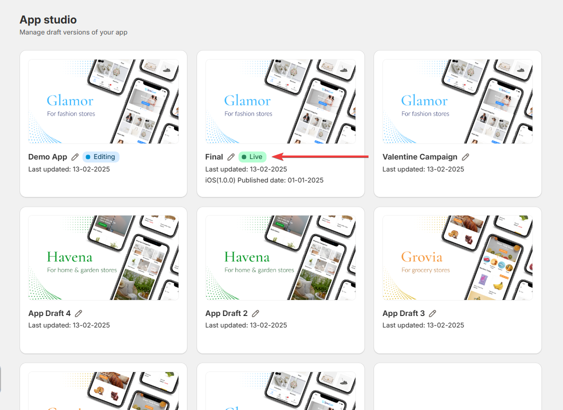 **Live:** This labels appears on app(s) that has been published to Apple App Store/Google Play Store and available to your users. Be extra careful when making changes to these apps, because most of the changes can immediately take affect in real time!