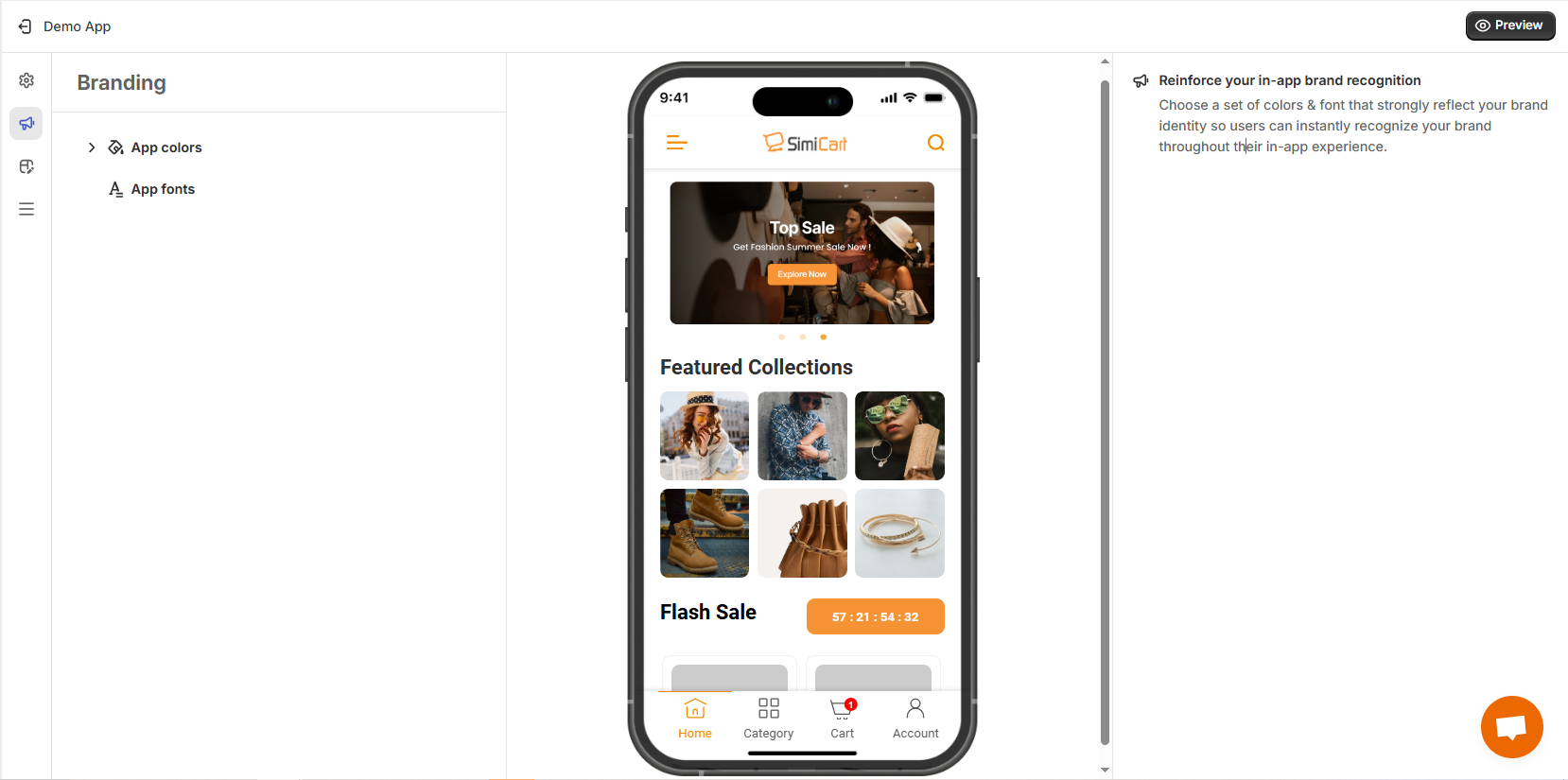 Choose a set of colors & font that strongly reflect your brand identity so users can instantly recognize your brand throughout their in-app experience.