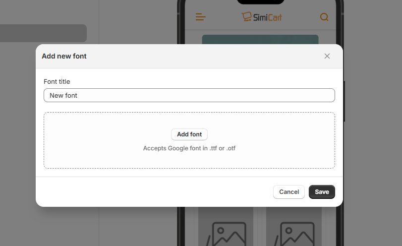 Upload a Google font in .ttf or .otf format