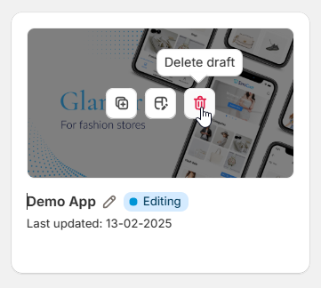 Click on this icon to delete the hovered app draft.