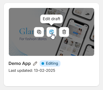 Click on this icon to start editing the hovered app draft.